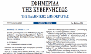 Βασικές ρυθμίσεις του Ν. 5239/2025 (ΦΕΚ Α΄178 /17-10-2025)